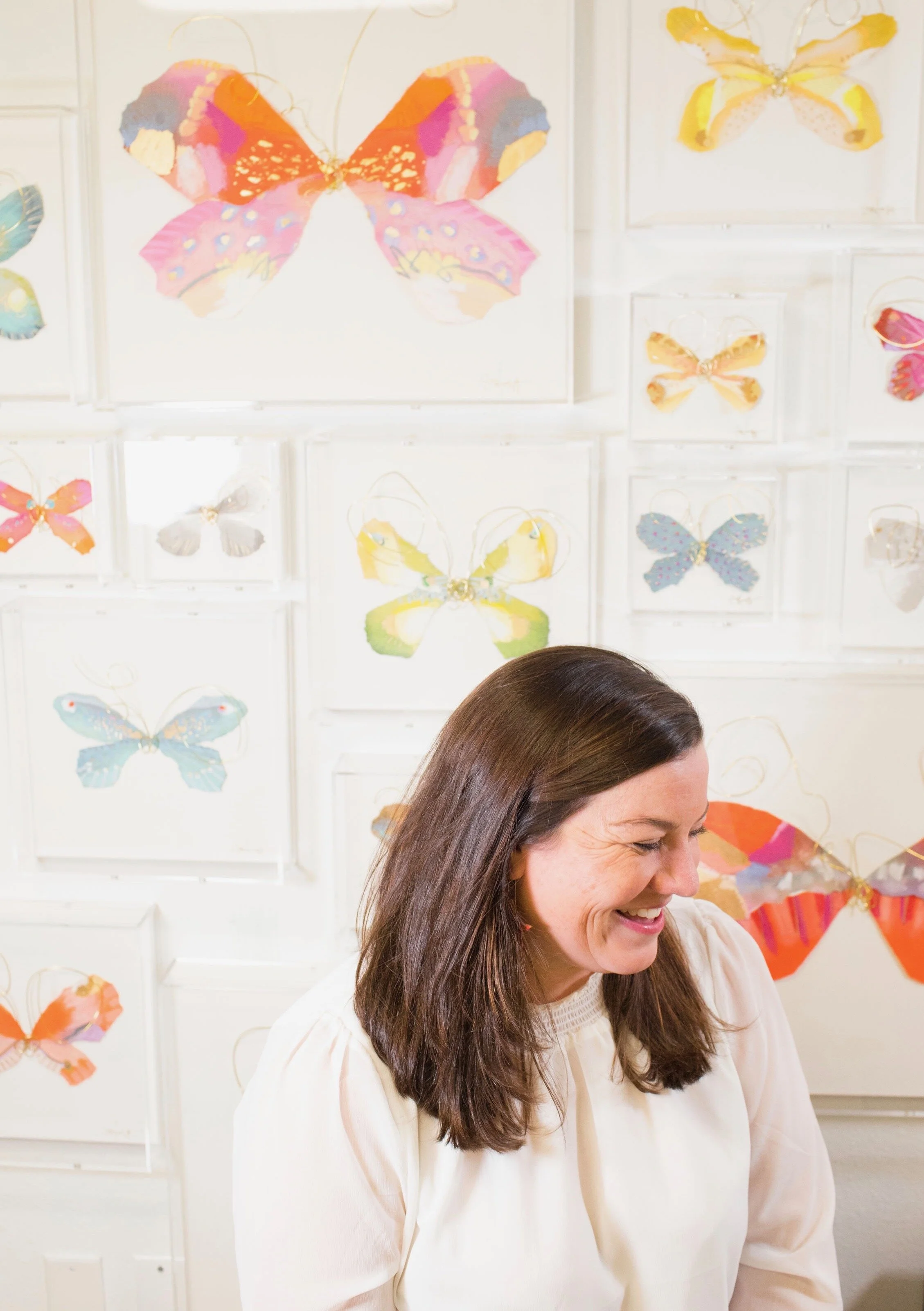 The gulf coast and it’s ever evolving elements are a direct inspiration to much of Elisabeth’s work as can be seen in her Bay Maps, Mullet Parades, and hand embroidered Stitches Collections. Her interior design roots can be found in her collections of expressionist abstract art experimenting with mixed media to merge her love of textiles & interior design with her love of painting and abstract art. Elisabeth’s most recent collections of Bugs & Butterflies are an explorative journey of medium experimentation inspired by the imaginitve naratives of her children and their simple pleasures (and fears!) in everyday natural findings.